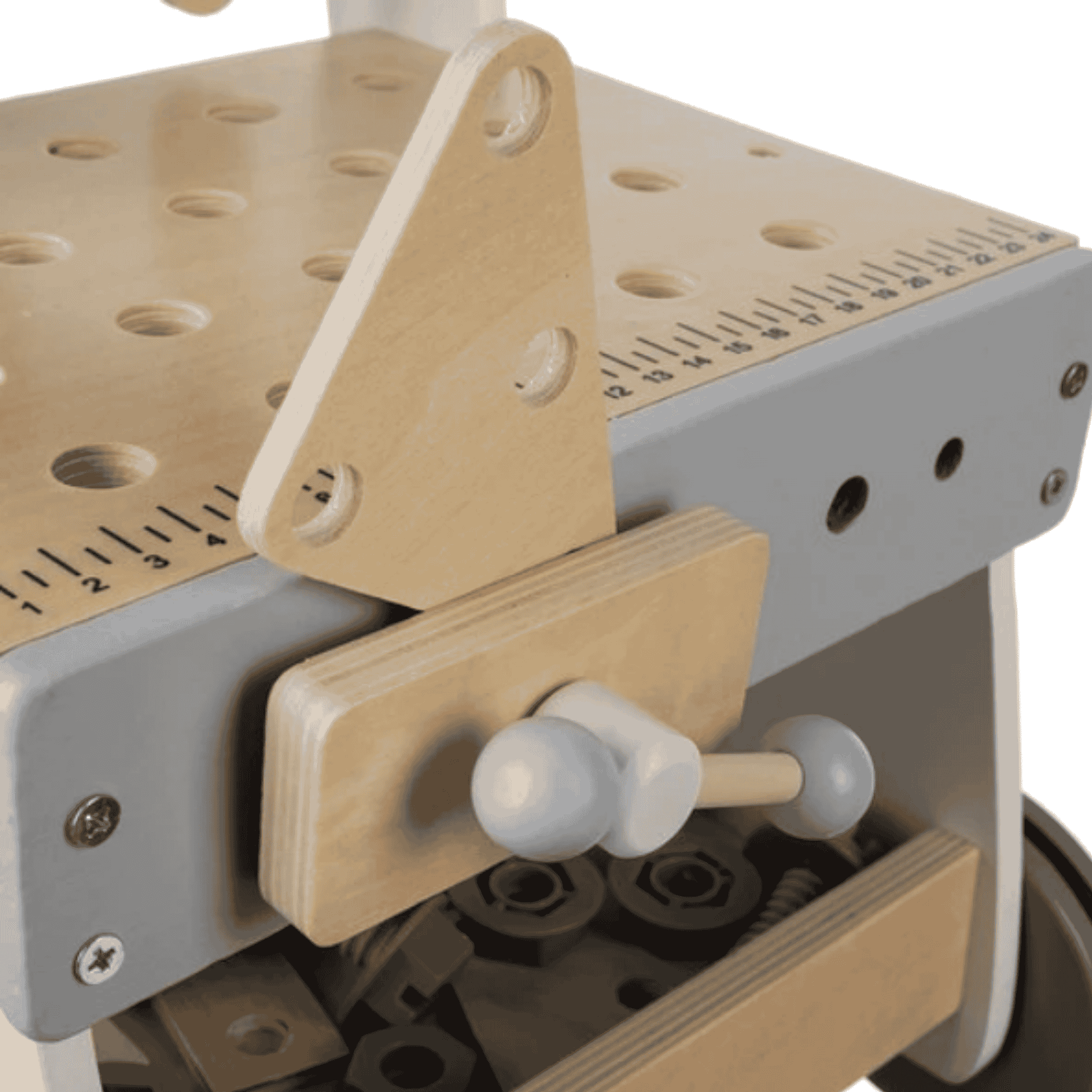 See multifunktsionaalne puidust töökoda on vastupidav, ohutu ja kaasahaarav mänguasi, mis toetab mängu kaudu õppimist ja pakub igale noorele ehitajale kauakestvat rõõmu.