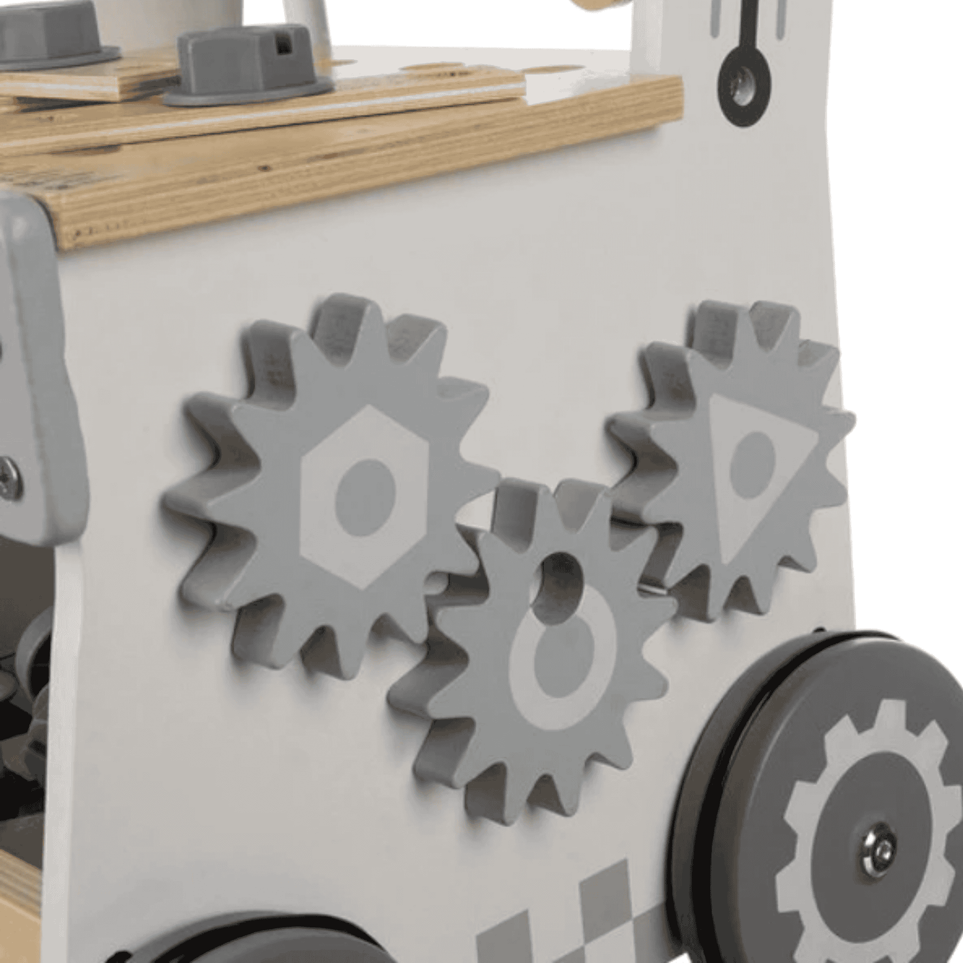 See töötuba pole mitte ainult lõbus, vaid ka hariv. Lapsed saavad kruustange kasutades, kruvisid keerates, kujundeid sorteerides või hammasrattaid liigutades harjutada koordinatsiooni, kujundeid ja peenmotoorikat. See soodustab probleemide lahendamist, kannatlikkust ja loovat mõtlemist.