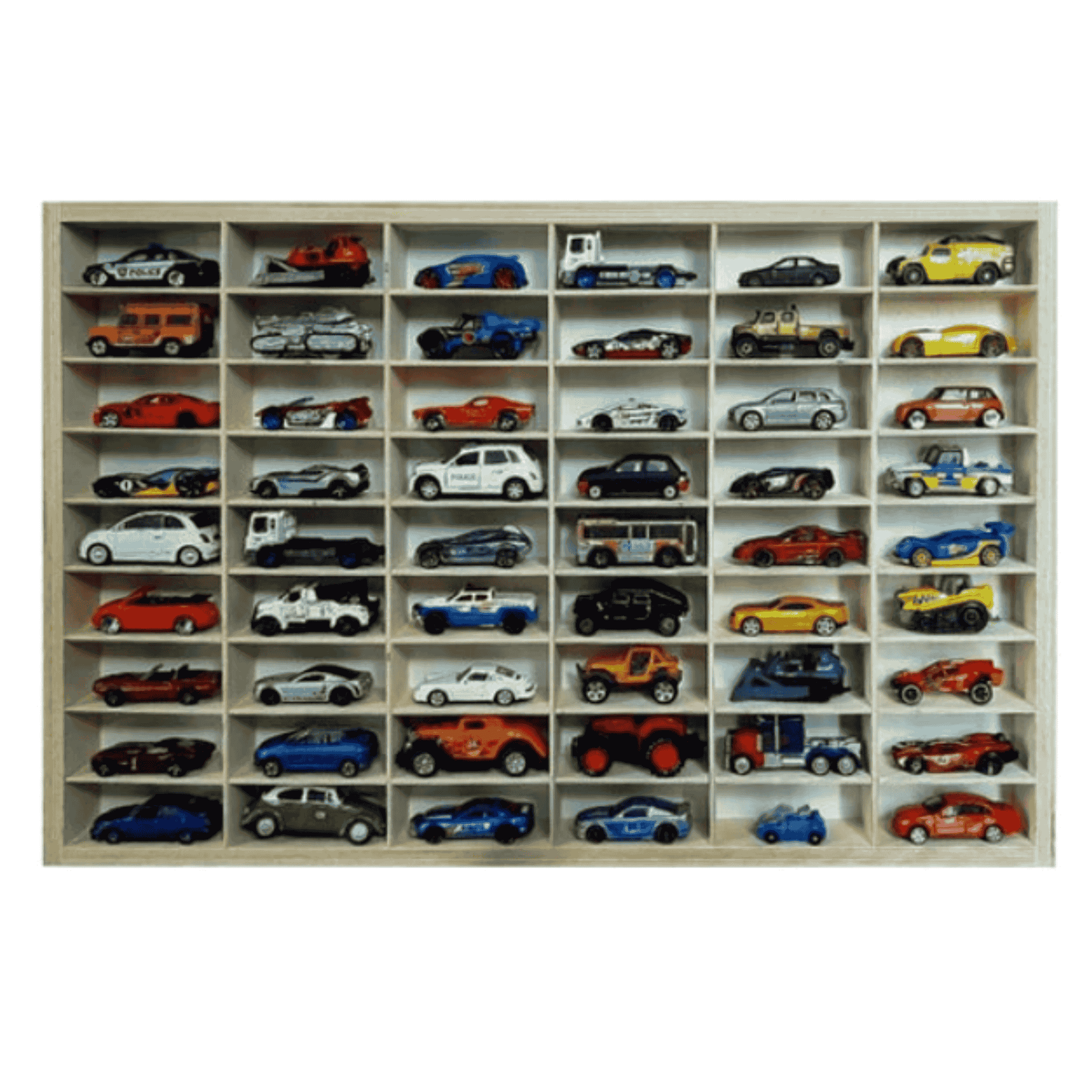 54 sektsiooniga aitab see lastel oma mänguautode kollektsiooni korrastatuna, nähtavana ja hõlpsasti ligipääsetavana hoida. Põrandal olevate hunnikute vahel otsimise asemel saavad lapsed uhkusega iga auto oma kohale välja panna.